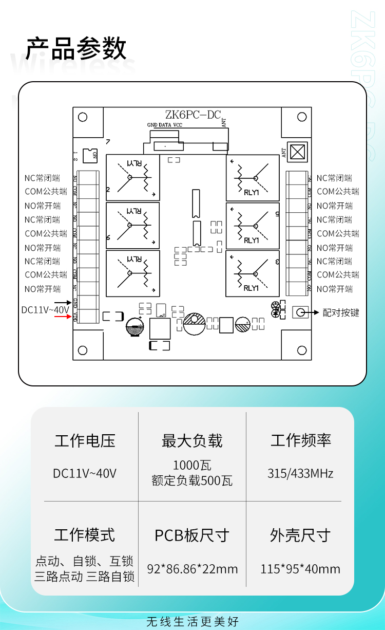 六、工作稳定,采用超外差接收模块与大电流输出稳压芯片