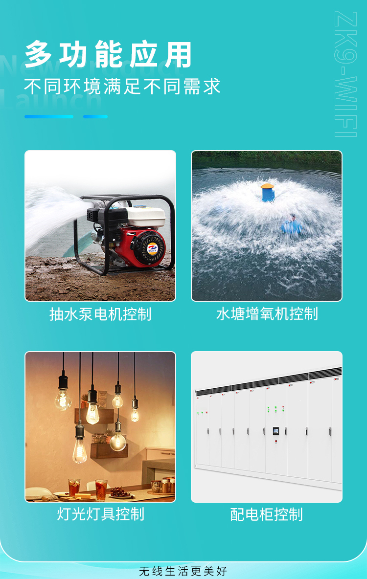 水泵电机控制、水塘增氧机控制、家用灯具控制、工控设备等