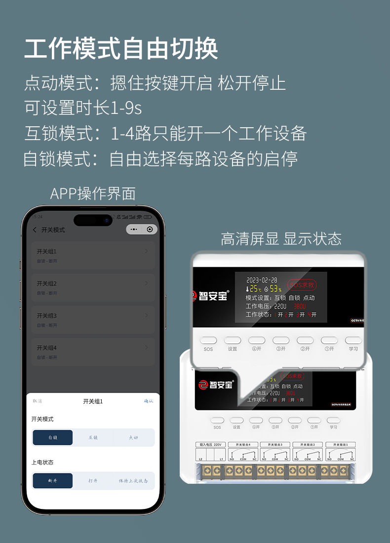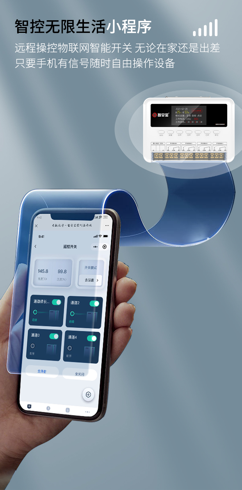 ZK-A10Q是一款四路智能遥控开关,手机小程序远程遥控不限距离,有四大定时模式,场景设置,电脑端可视化大屏显示。