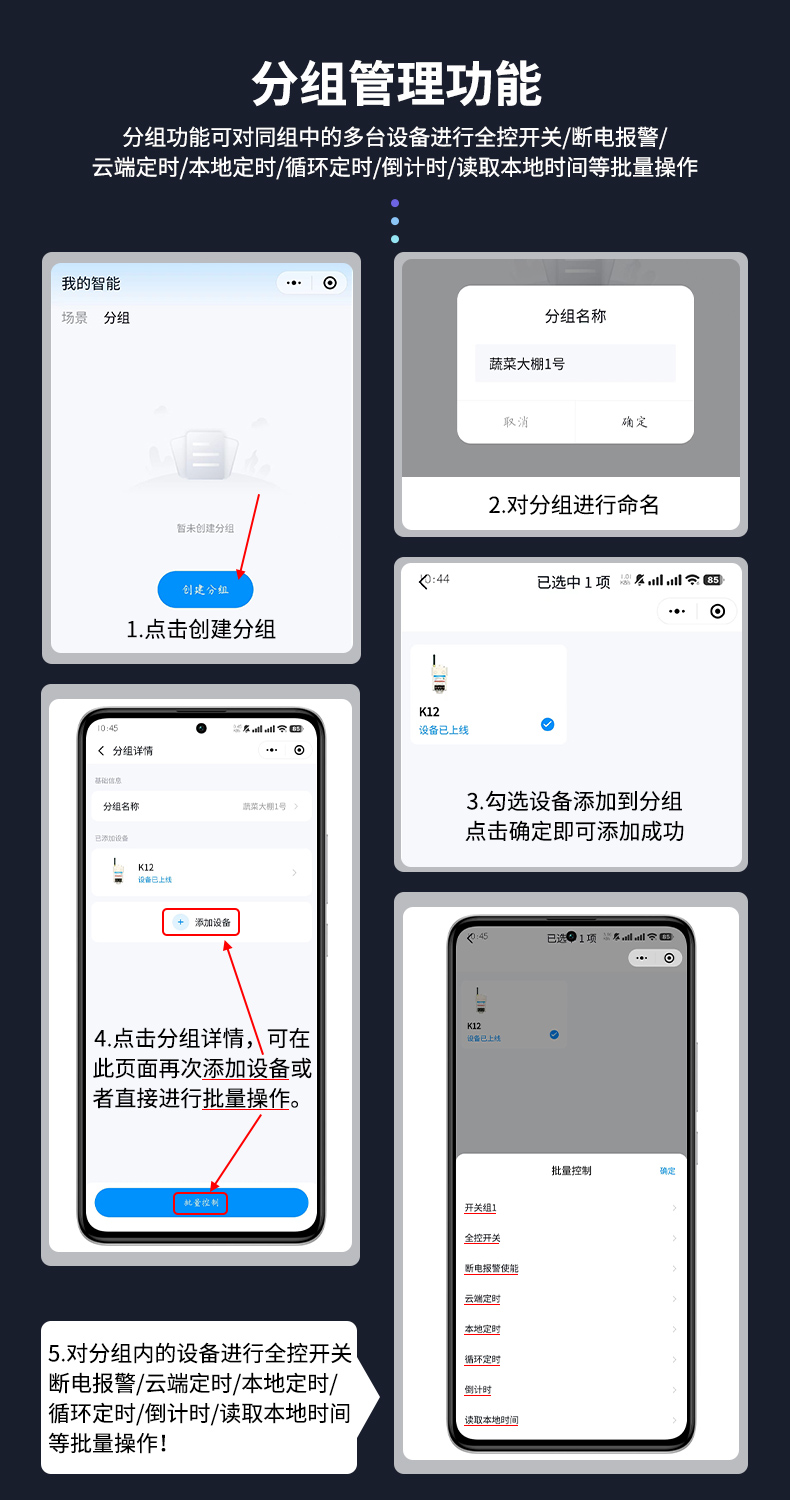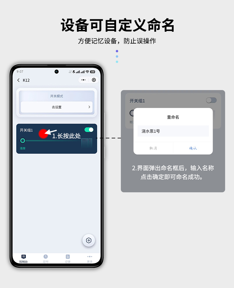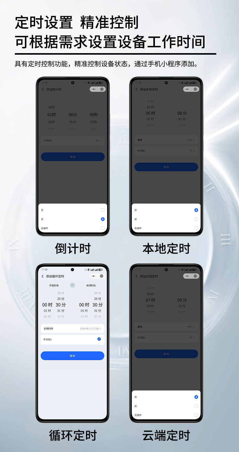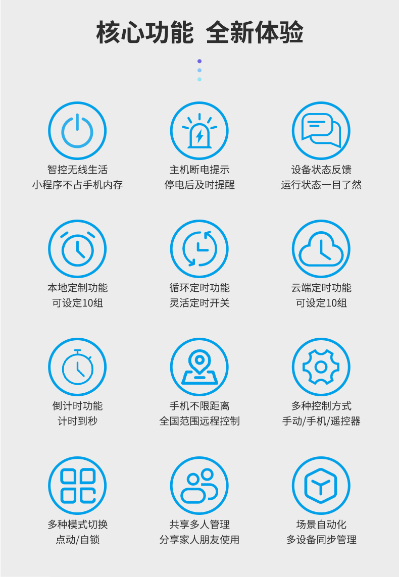K12是一款单路智能遥控开关,手机微信小程序即可远程控制开关,不限距离,四种定时模式,精准把控工作时间