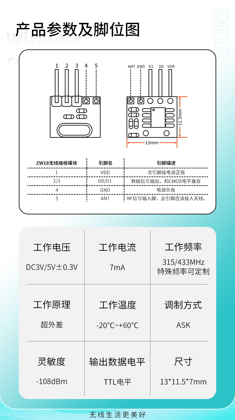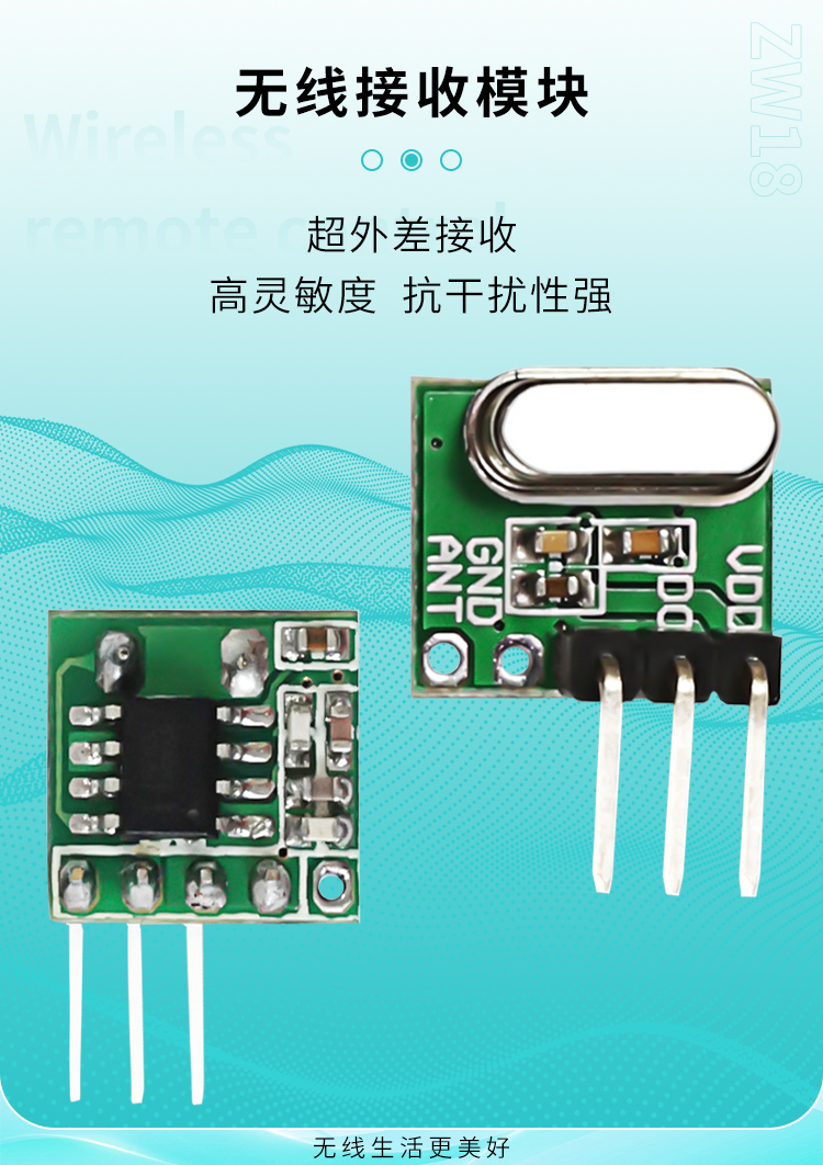 ZW18是一款低价格、高性能的香妃直播软件下载超外差接收模块,与其他超外差接收模块比较,具有价格便宜、性能好稳定等特点。