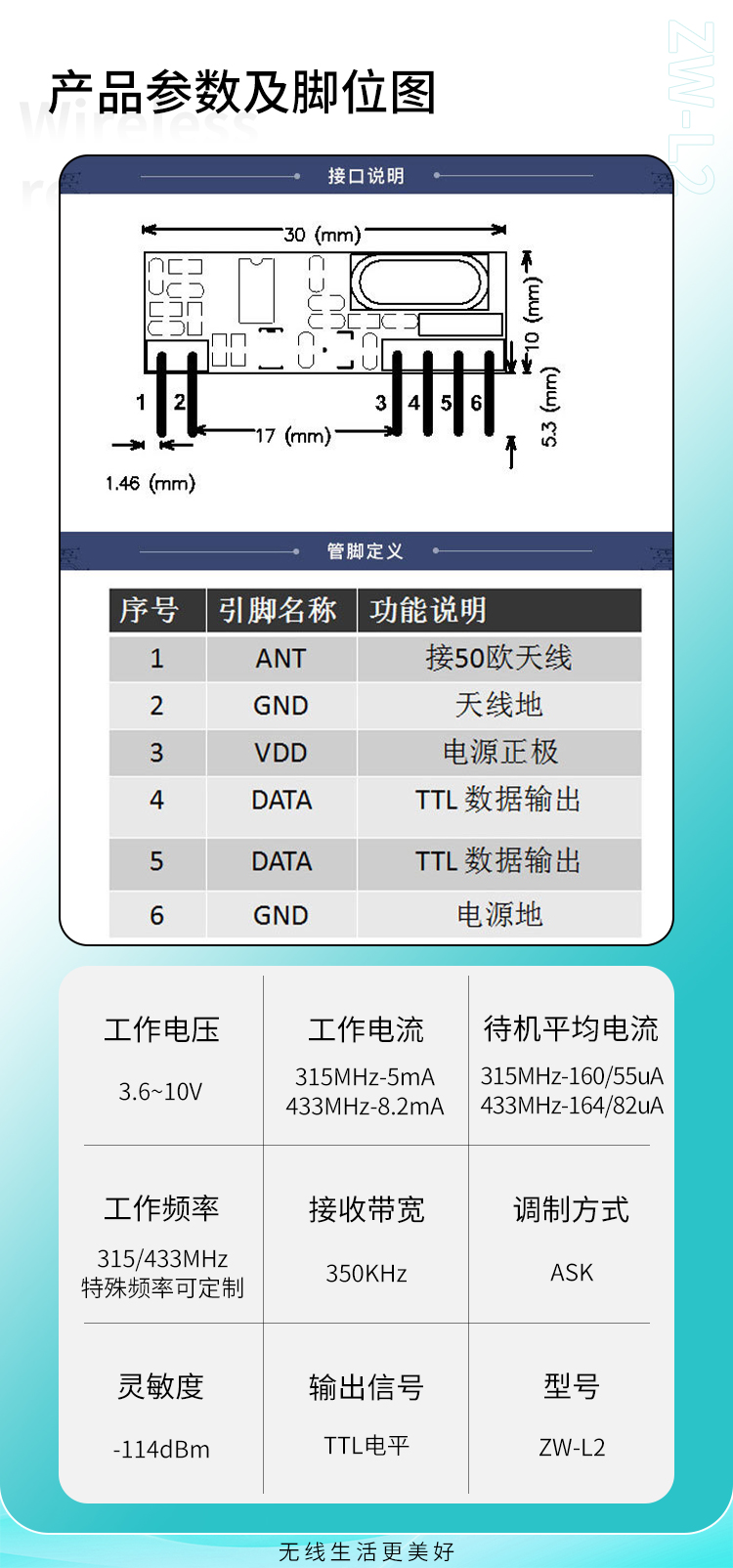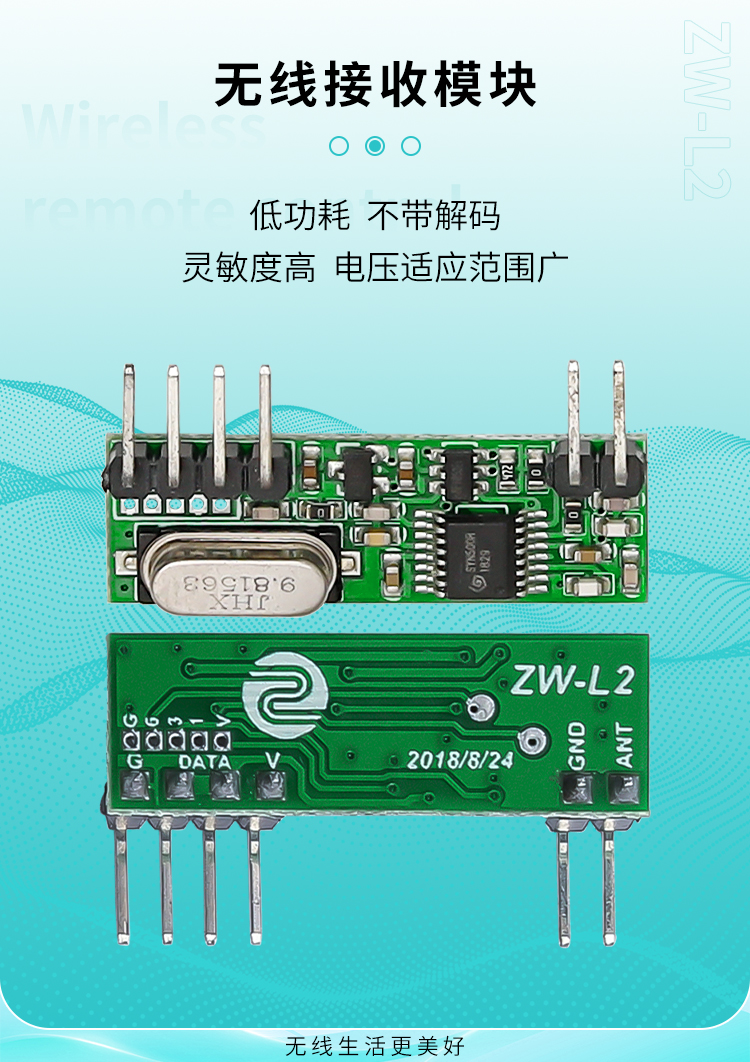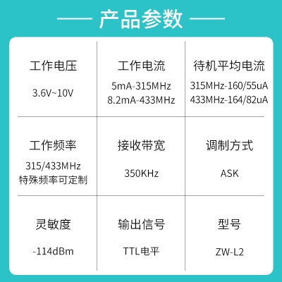 ZW-L2是一款高灵敏度、低功耗、不带解码的接收模块,它工作电压范围广