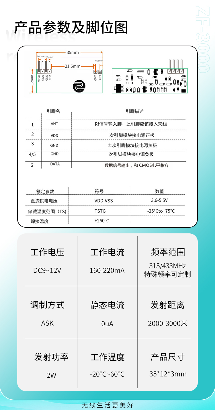 4.调制方式:ASK5.静态电流:0uA
