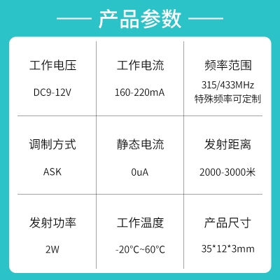 1.接收频率:315/433MHZ;特殊频率可定制