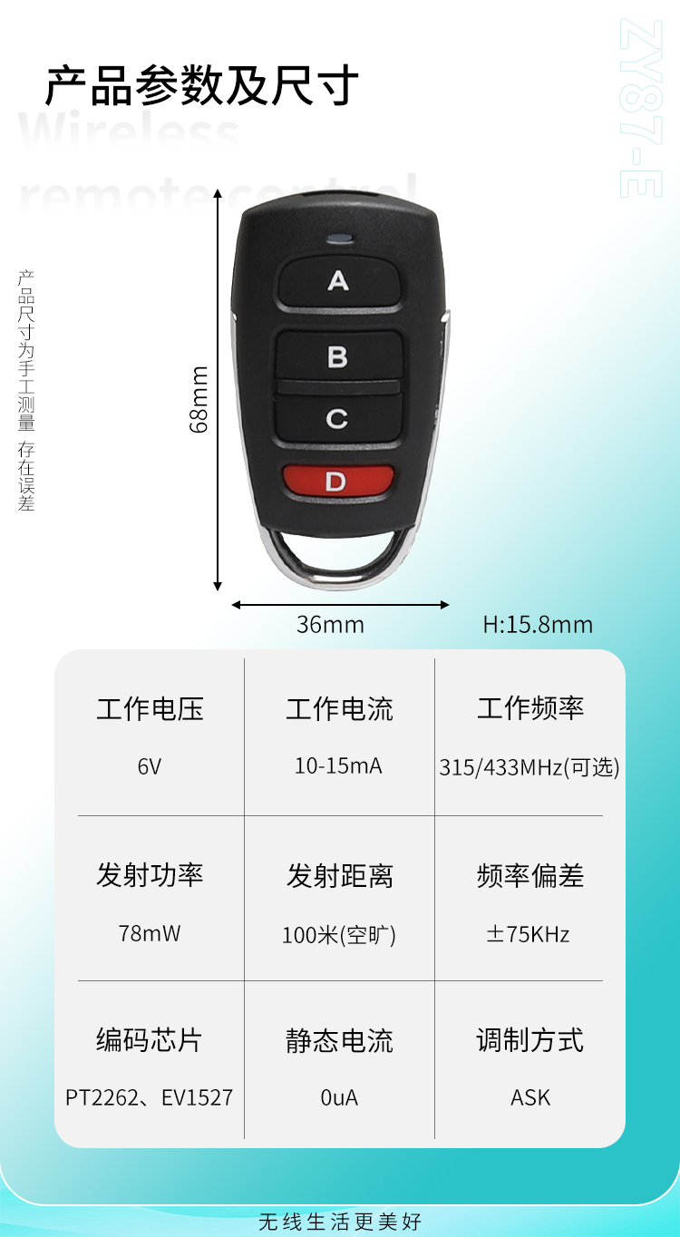 ZY87-E是一款小功率香妃直播软件下载遥控器,外观精美