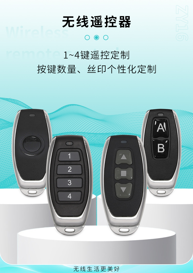 ZY16-E是一款小功率香妃直播软件下载遥控器,1-4键可选,金属边框质感。