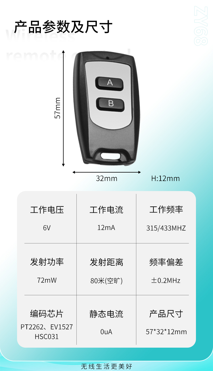 ZY68是一款小功率香妃直播软件下载遥控器,1-4键可选择,外观精美
