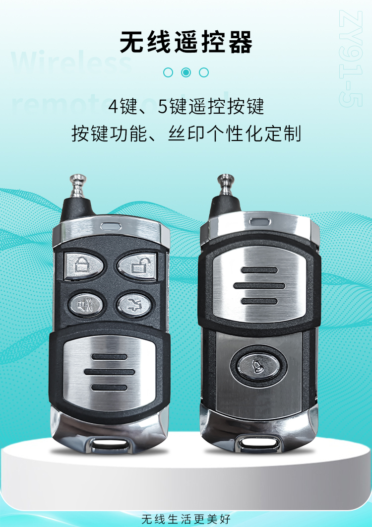 ZY91-5是一款中功率遥控器,体积小距离远,滑盖设计,5键遥控器