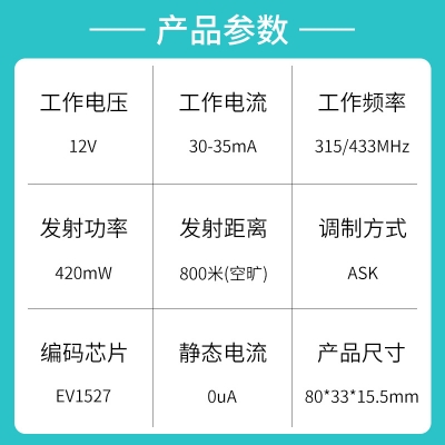 遥控开关、遥控车库门、防盗报警、遥控门锁、遥控电动卷帘门窗、水泵遥控、工业控制产品等;