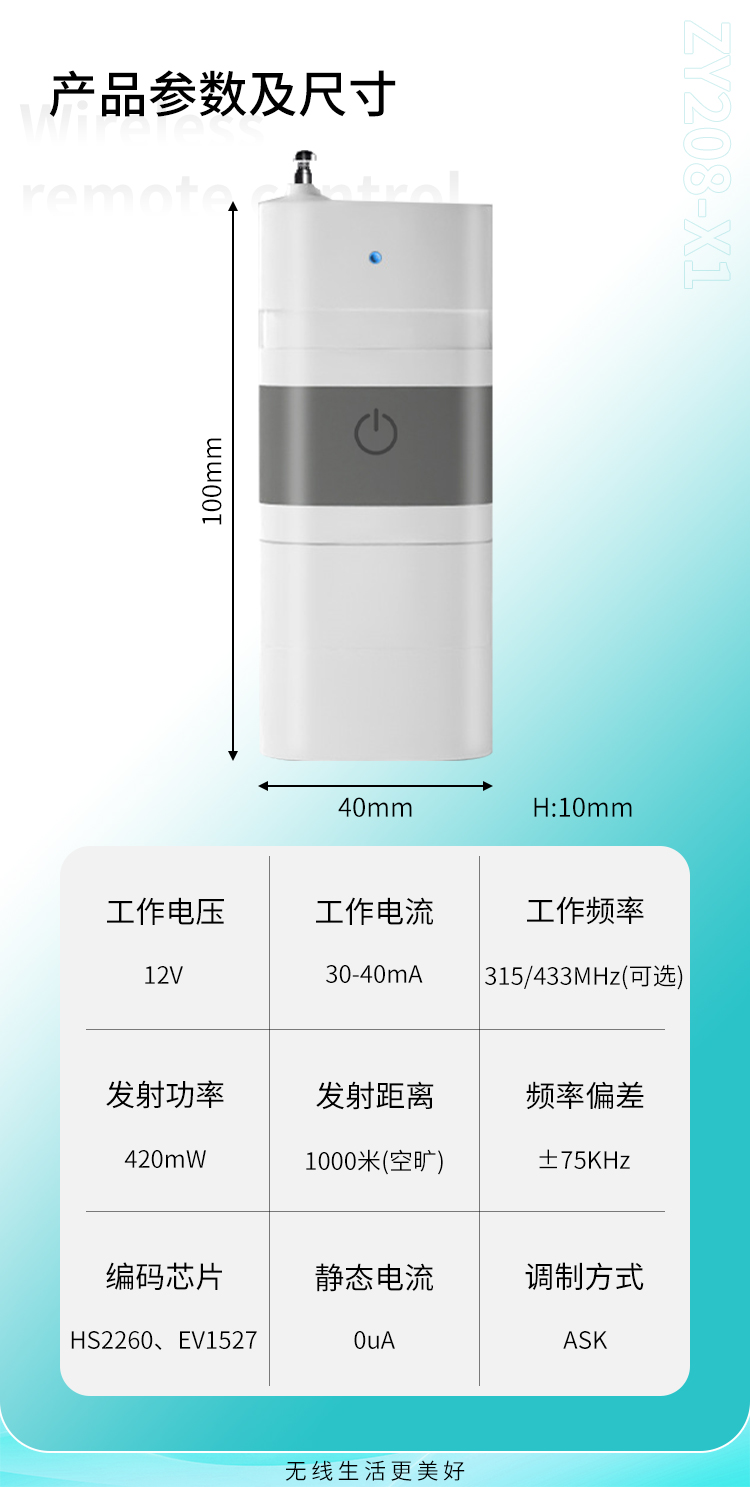 ZY208-X是一款中功率香妃直播软件下载遥控器,1-4键可选